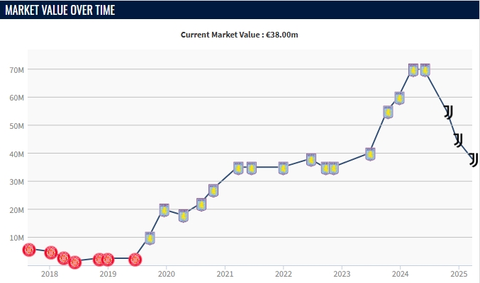 03月26日訊 昨日德轉(zhuǎn)更新意甲球員身價(jià),去年夏窗轉(zhuǎn)會(huì)至尤文的道格拉斯-路易斯身價(jià)再次下跌,僅剩3800萬(wàn)歐,而他在去年從維拉轉(zhuǎn)會(huì)至尤文時(shí),身價(jià)還高達(dá)7000萬(wàn)歐。