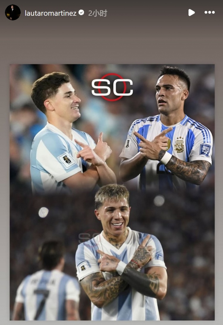 2025-03-26 20:39:39阿爾瓦雷斯&恩佐模仿勞塔羅慶祝動(dòng)作,后者社媒轉(zhuǎn)發(fā)三人照片