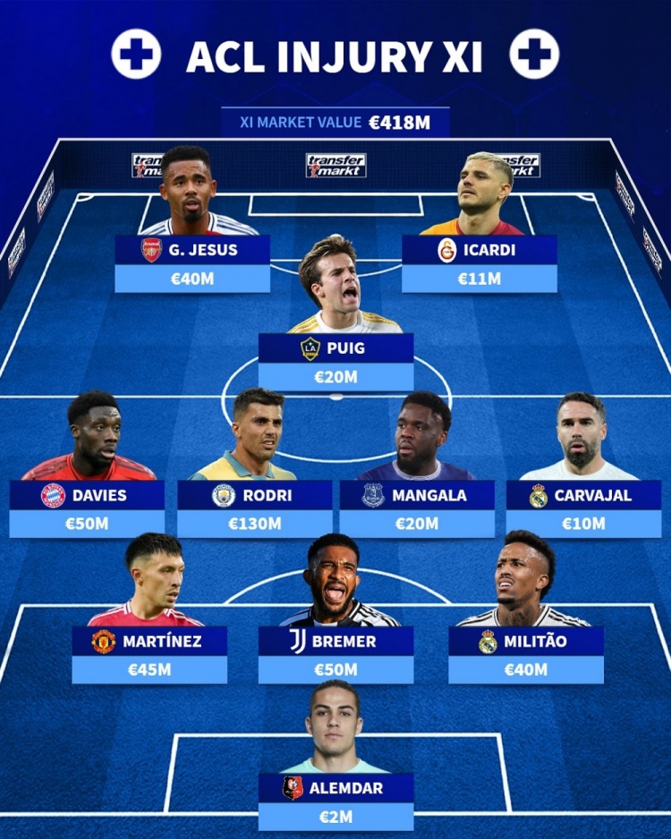 2025-03-27 08:45:00德轉(zhuǎn)排本賽季十字韌帶受傷陣:羅德里、戴維斯、二弟、米利唐在列
