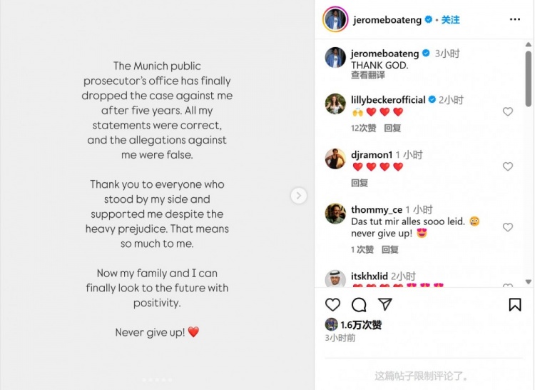 2025-03-27 08:45:02博阿滕更新社媒,慶賀針對他的家暴指控被撤銷
