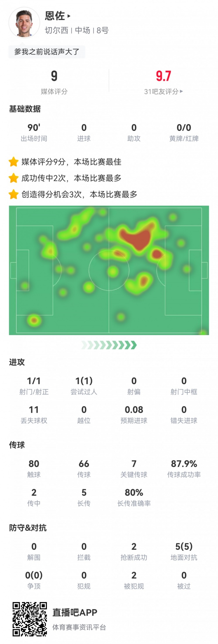 2025-02-26 08:06:52戰(zhàn)神!恩佐數(shù)據(jù):7次關(guān)鍵傳球,5次對(duì)抗全成功,評(píng)分9.0全場(chǎng)最高