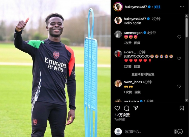 2025-03-28 02:00:42接近復(fù)出,薩卡社媒曬身穿訓(xùn)練服照片:又見面了