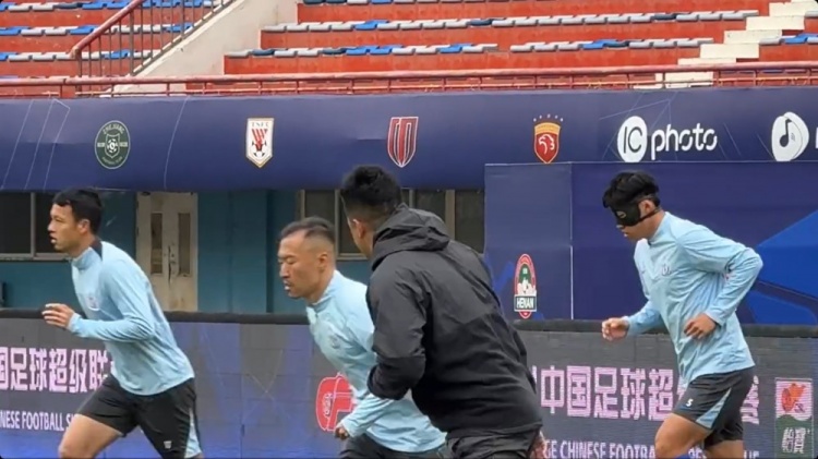 2025-03-28 19:34:01申花今天賽前踩場訓(xùn)練,中衛(wèi)朱辰杰戴面具參加