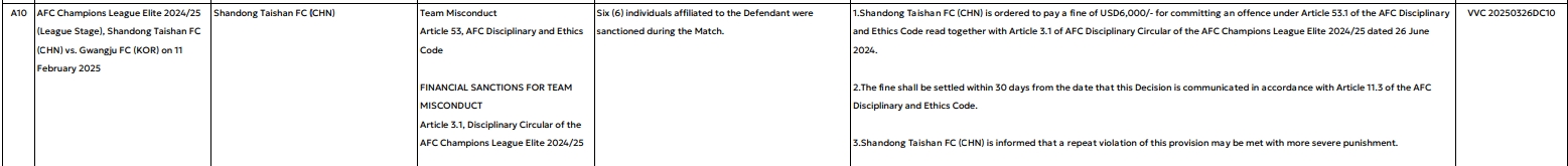 2025-03-28 19:45:28又被罰了!亞足聯(lián)官方:泰山對陣光州時6人染黃,罰款6000美元