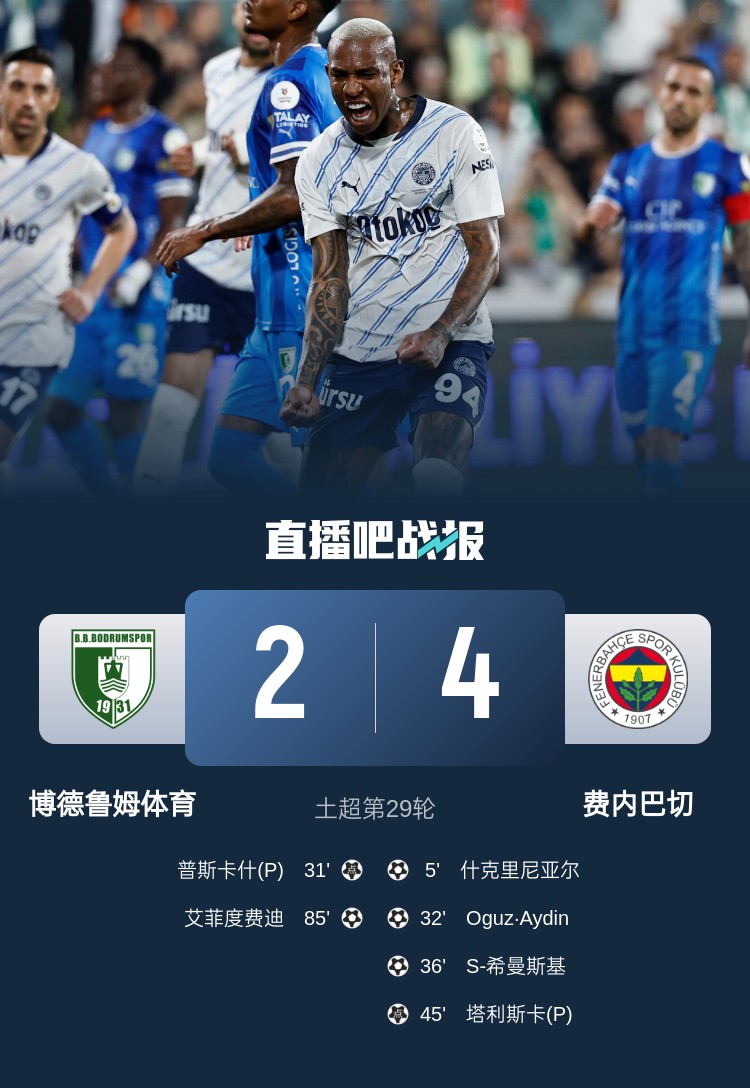 費(fèi)內(nèi)巴切本輪4-2擊敗博德魯姆體育,費(fèi)內(nèi)巴切上半場就多點(diǎn)開花,比賽最終費(fèi)內(nèi)巴切4-2取勝。