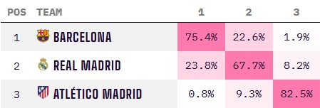 本輪西甲,馬競客場1-1戰(zhàn)平西班牙人,賽后多賽距離榜首已有6分之差。數(shù)據(jù)機構Opta給出的最新數(shù)據(jù)顯示,馬競本賽季西甲奪冠概率只剩下0.8%,基本可以宣布退出爭冠。