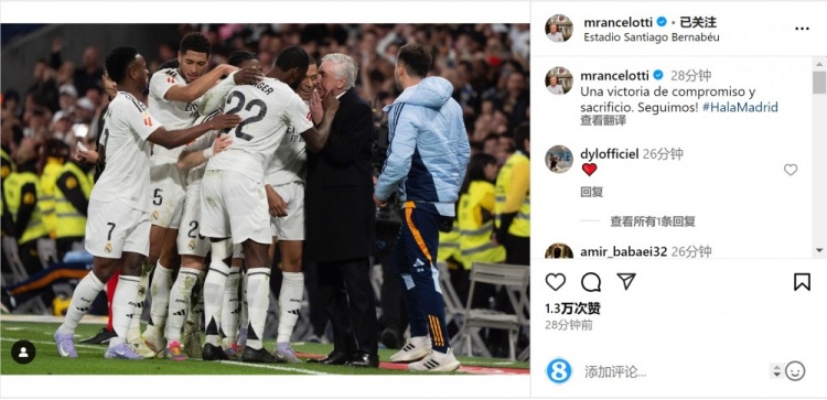 2025-03-30 20:11:29安切洛蒂社媒:這是奉獻(xiàn)和犧牲精神帶來(lái)的勝利,我們繼續(xù)前進(jìn)!