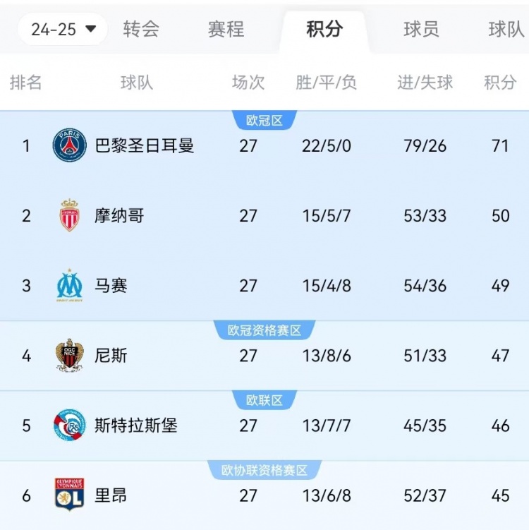 2025-03-30 20:23:38還剩7輪領(lǐng)先21分+33凈勝球!巴黎下輪打平昂熱,就可提前奪冠