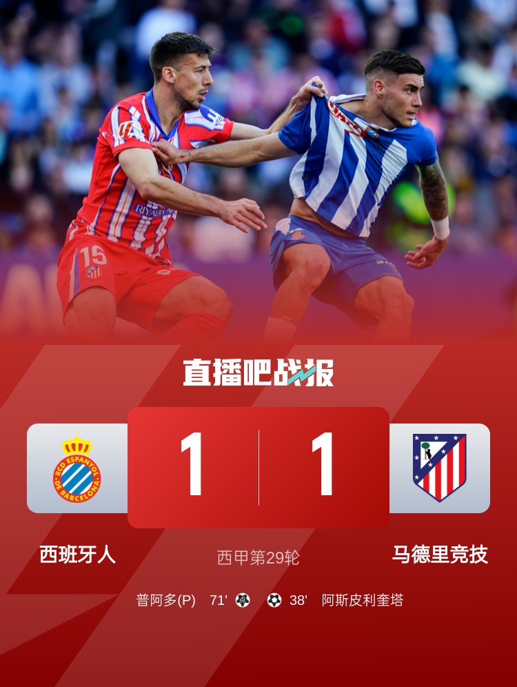 西甲第29輪,馬競(jìng)客場(chǎng)1-1西班牙人。上半場(chǎng),勒諾爾芒傷退,阿斯皮利奎塔凌空無解世界波;下半場(chǎng),朗格萊魯莽拉人送點(diǎn),普阿多點(diǎn)射扳平。