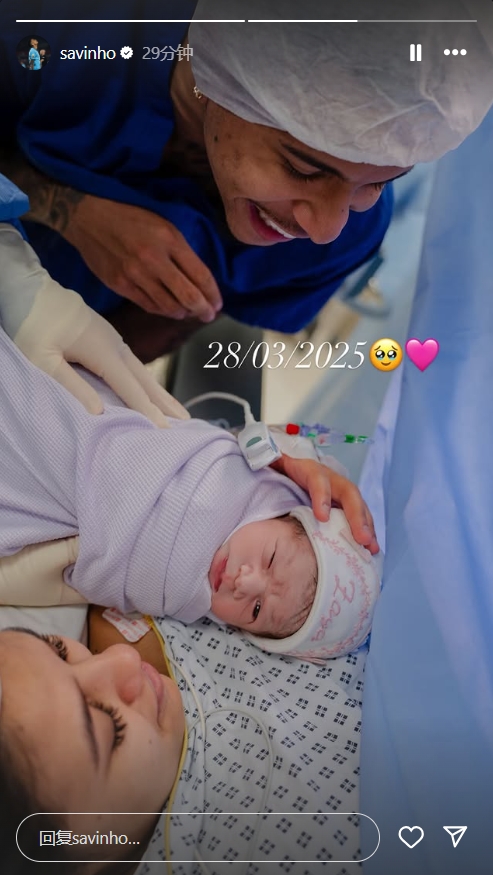2025-03-30 20:25:12恭喜!薩維尼奧社媒曬照慶祝孩子出生