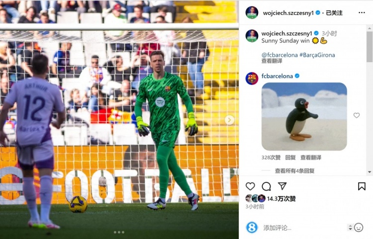 2025-03-31 10:12:59加盟巴薩以來16勝2平!什琴斯尼社媒:在陽光明媚的周日取勝