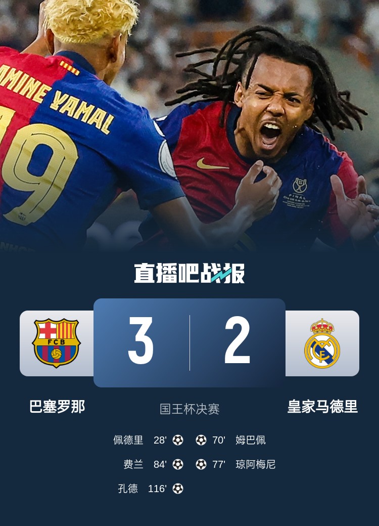 2025-04-27 16:06:07格局,皇馬官推發(fā)文:祝賀巴薩奪得2025年國王杯冠軍
