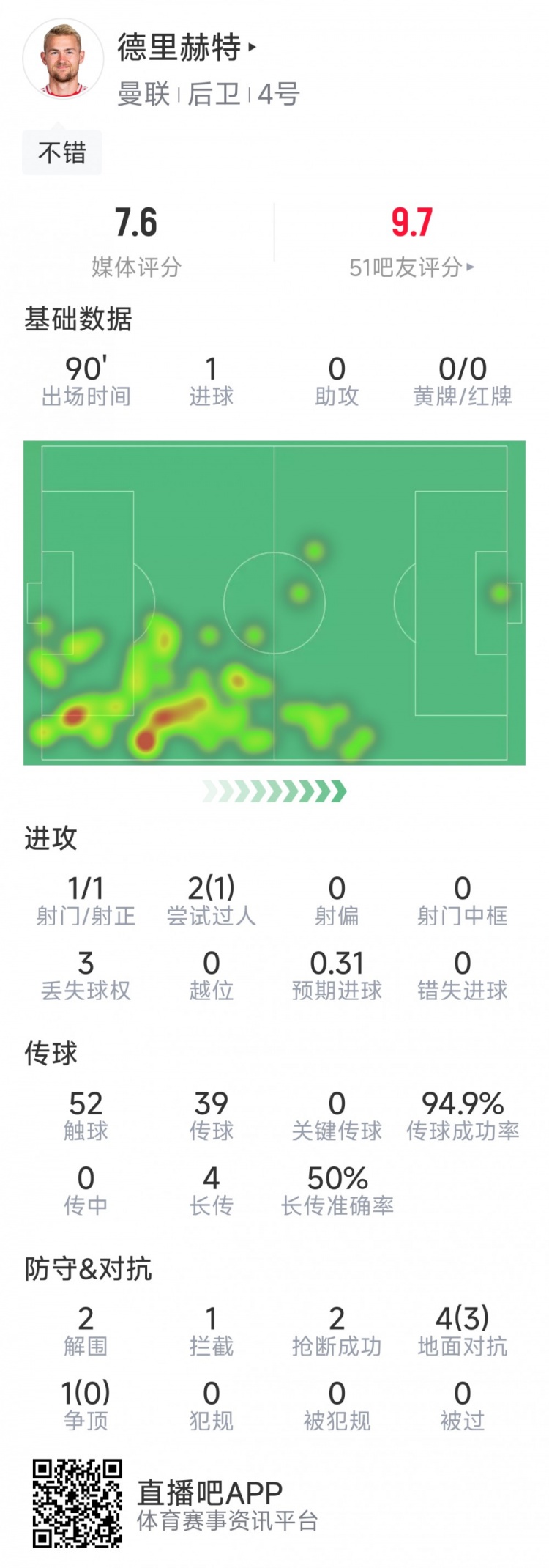 2025-02-27 08:06:59德里赫特本場(chǎng)數(shù)據(jù):1粒進(jìn)球,2解圍,2搶斷,3次成功對(duì)抗