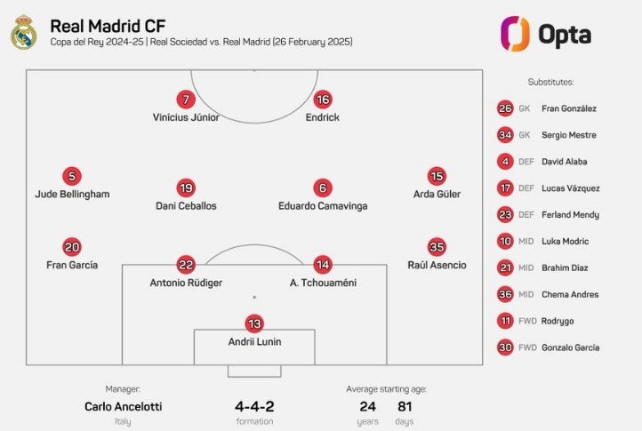 2025-02-27 08:07:27皇馬變陣,居勒爾、恩德里克、維尼修斯首次搭檔先發(fā)出戰(zhàn)