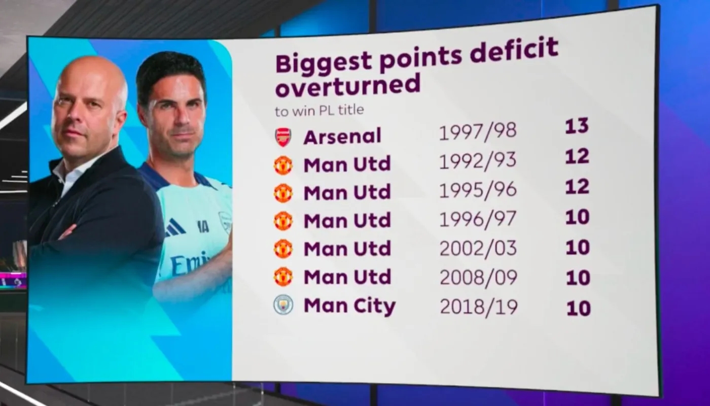 2025-02-27 16:04:29有先例!97/98賽季阿森納落后13分翻盤奪冠,但...