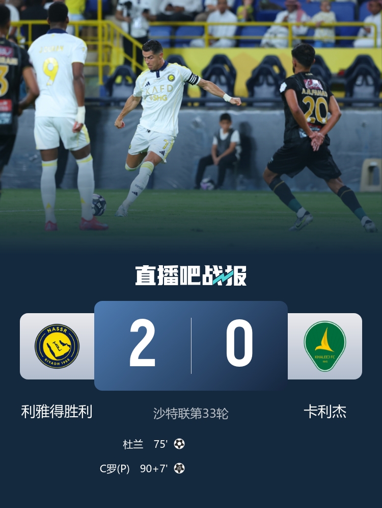 C羅點射+失點,利雅得勝利2-0擊敗卡利杰。