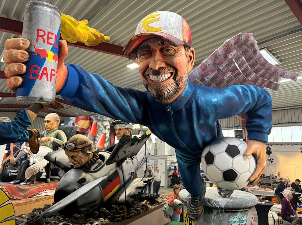 據(jù)報道,該彩車上是前美因茨球員和教練克洛普的身影,他的翅膀是用鈔票做成的,手里拿著一罐紅牛標志性的能量飲料和一個足球。彩車側面還寫道:“對于克洛普來說,他不再關心那些曾經(jīng)很重要的價值觀。由于紅牛用大量金錢誘惑他,他現(xiàn)在正從自己的寶座上跌落下來。”