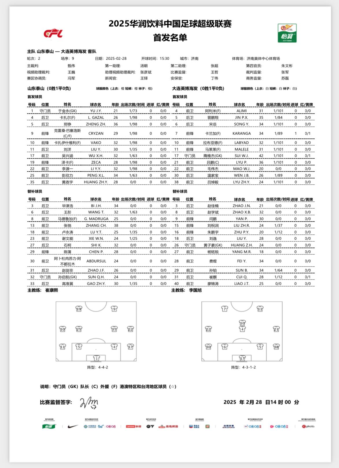 2025-02-28 16:04:1219歲國青小將毛偉杰進(jìn)入大連英博戰(zhàn)泰山首發(fā),將迎中超首秀