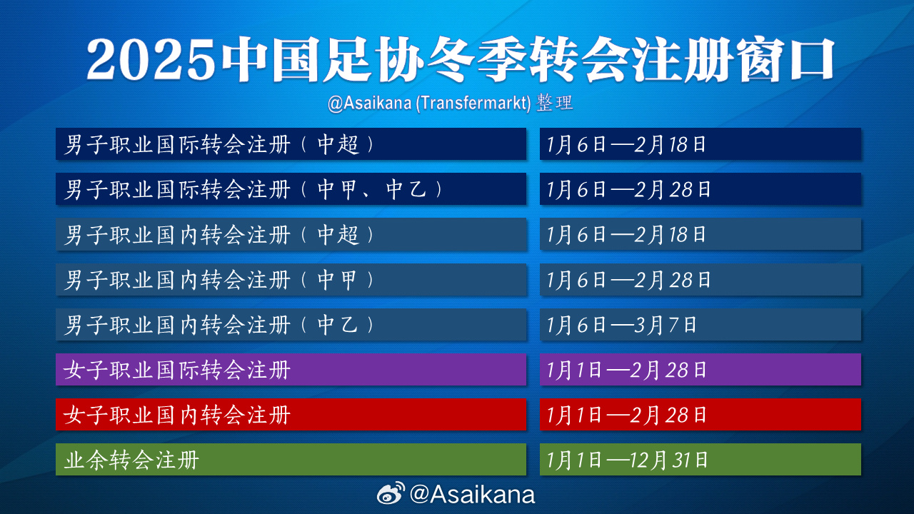 2025中國職業(yè)聯(lián)賽冬季轉(zhuǎn)會窗時間