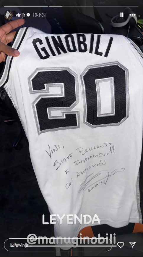 2025-03-01 16:03:19維尼修斯社媒曬吉諾比利簽名球衣:傳奇