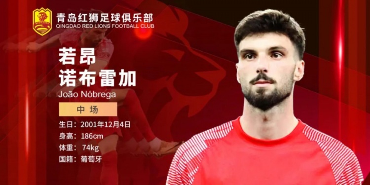 為更好迎接新賽季,經(jīng)雙方友好協(xié)商并達(dá)成一致,葡萄牙足球運(yùn)動(dòng)員若昂·諾布雷加(JOAO MIGUEL VIEIRA NOBREGA)正式加盟青島紅獅足球俱樂(lè)部。