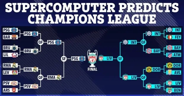 2月21日訊 《太陽報(bào)》用超級(jí)計(jì)算機(jī)預(yù)測了本賽季歐冠,最終結(jié)果是利物浦奪得冠軍。