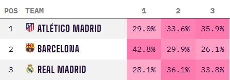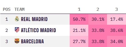 2025-03-02 18:07:085輪僅1勝!皇馬西甲奪冠概率腰斬跌至三強墊底,兩周前還51%領(lǐng)跑