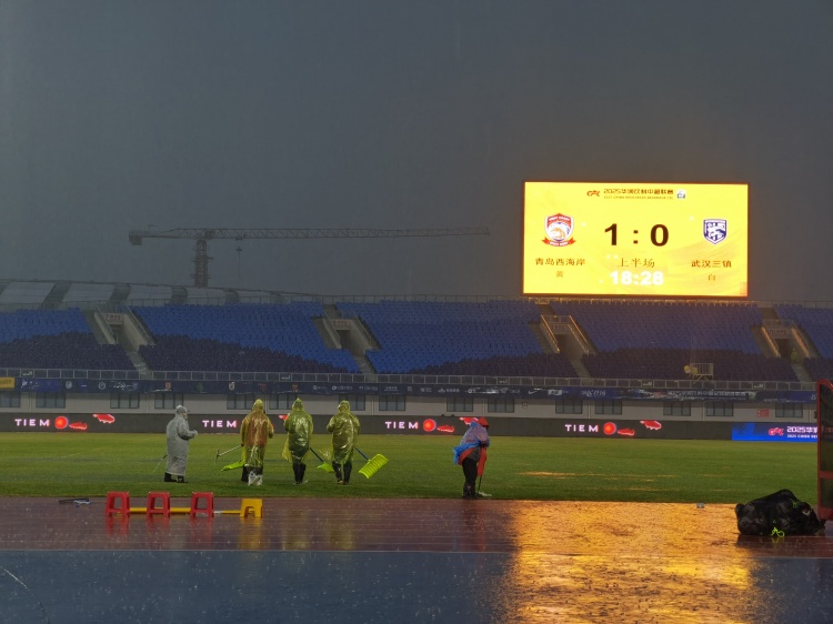 03月02日訊 官方消息,因大雨導致場地條件無法達到比賽要求,決定中止青島西海岸與武漢三鎮(zhèn)的比賽,補賽時間為3月3日14:00。