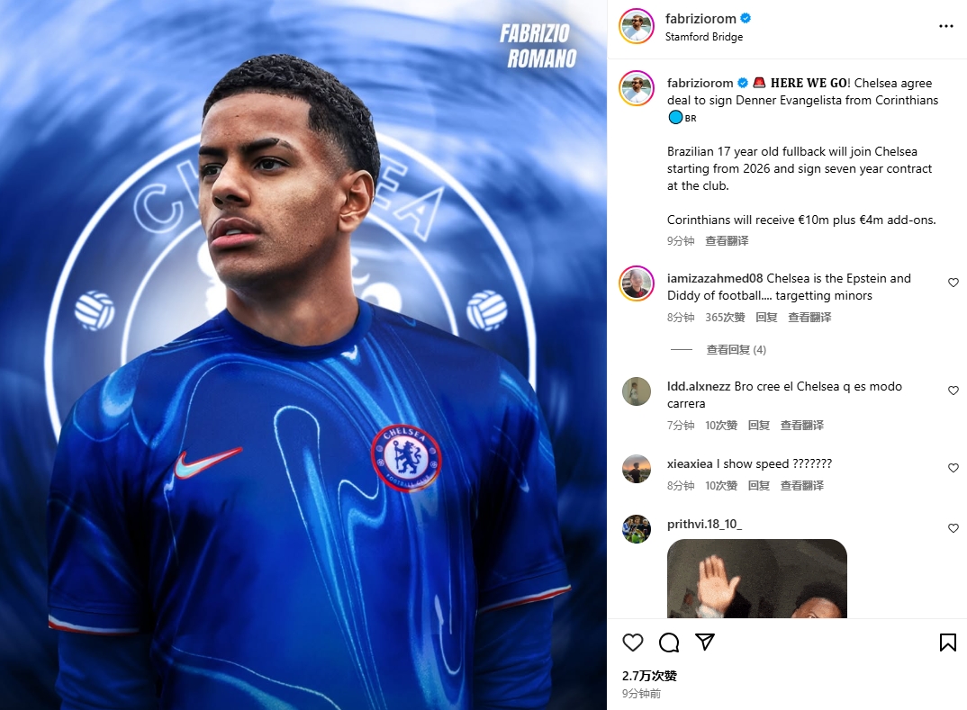 2025-03-02 18:08:36Here we go!羅馬諾:切爾西1400萬簽17歲巴西后衛(wèi)登納,26年加盟