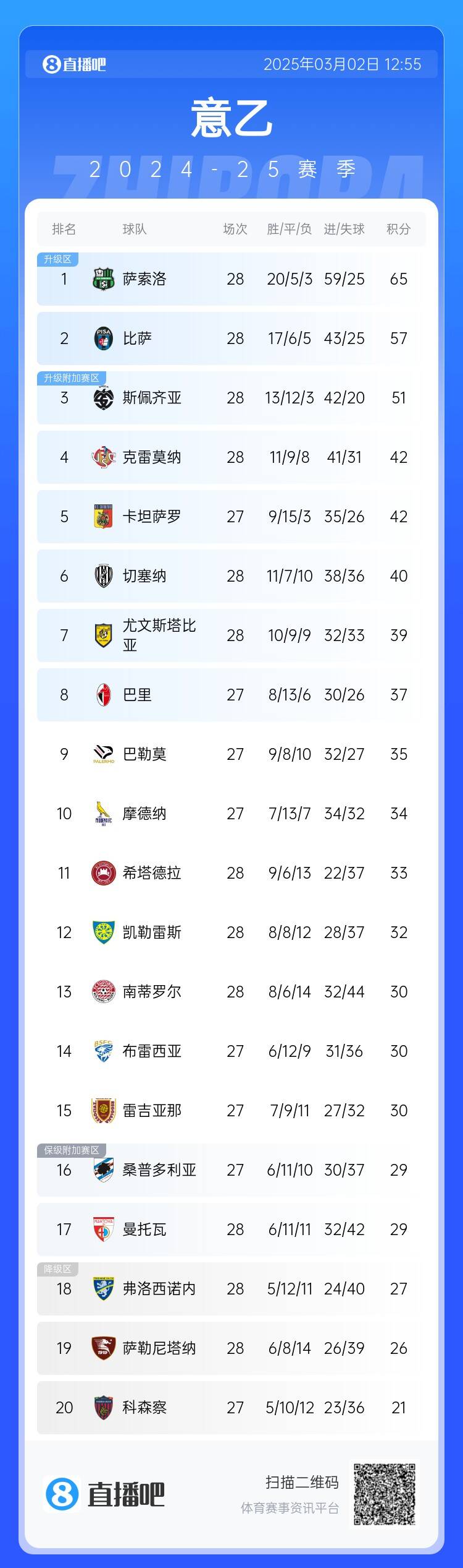 而在直通區(qū)的分數(shù)上,薩索洛已經(jīng)14分領跑直通區(qū),幾乎已經(jīng)確定了一個直接升級名額。