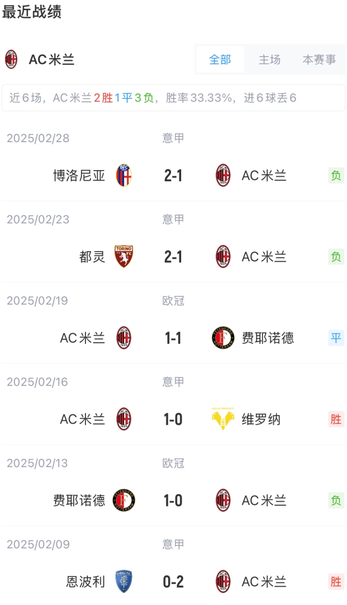 2025-02-28 04:41:202025年02月28日 9年來(lái)首敗!AC米蘭1-2博洛尼亞意甲兩連敗跌至第8 萊奧破門(mén)難救主