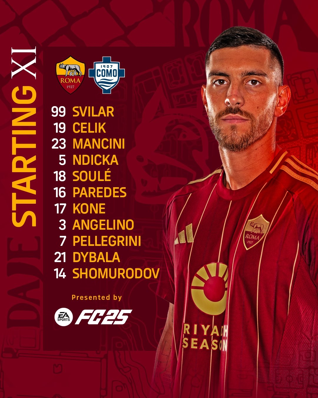 2025-03-03 02:53:25羅馬VS科莫首發(fā):迪巴拉領(lǐng)銜,帕雷德斯、佩萊格里尼、蘇萊出戰(zhàn)