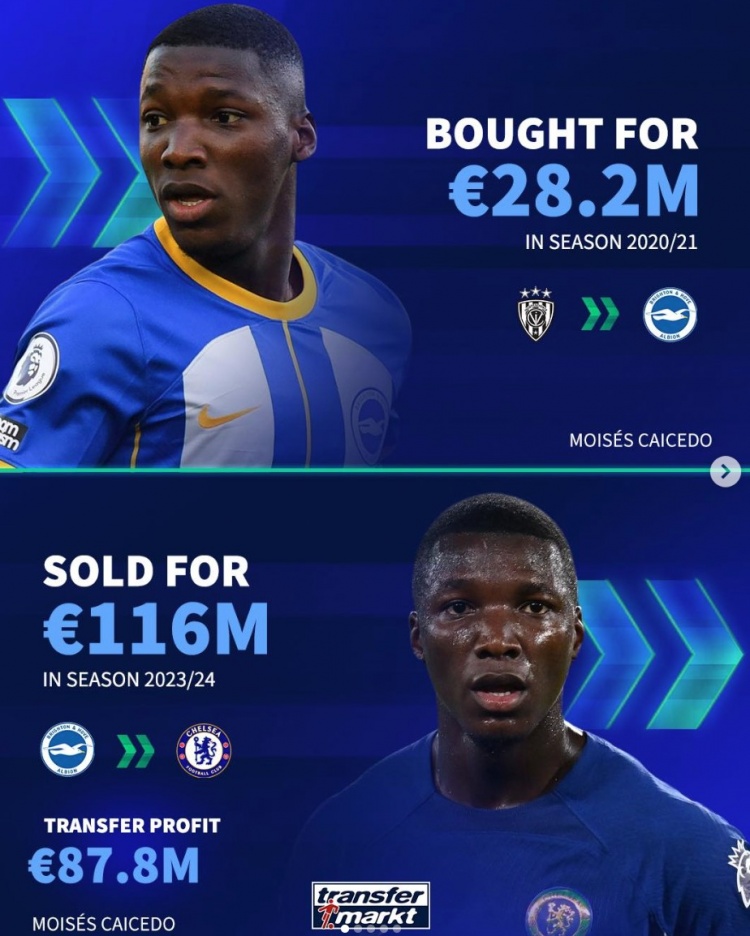 3月3日訊 《轉(zhuǎn)會(huì)市場(chǎng)》統(tǒng)計(jì)了布萊頓近年的5筆低買高賣轉(zhuǎn)會(huì)操作,共計(jì)凈賺超過2億歐元。