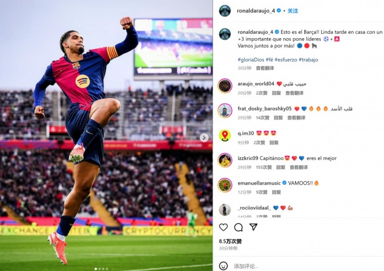 2025-03-03 08:48:17傳射建功!阿勞霍社媒曬慶祝照:這就是巴薩,讓我們贏得更多!