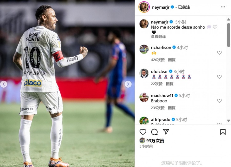 2025-03-03 17:25:45加盟桑托斯7場(chǎng)3球3助,內(nèi)馬爾社媒曬照:別把我從夢(mèng)中叫醒