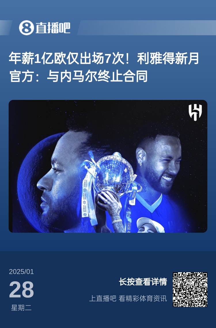 2025-03-03 17:28:19要錢何用?內(nèi)馬爾在新月年薪1億出場7次,免簽桑托斯1個(gè)月即追平