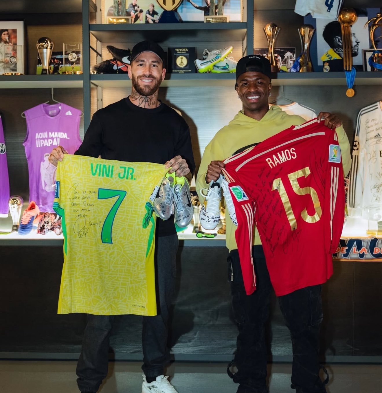 2025-02-21 17:44:38傳承!維尼修斯拜訪皇馬傳奇拉莫斯,兩人交換國家隊球衣