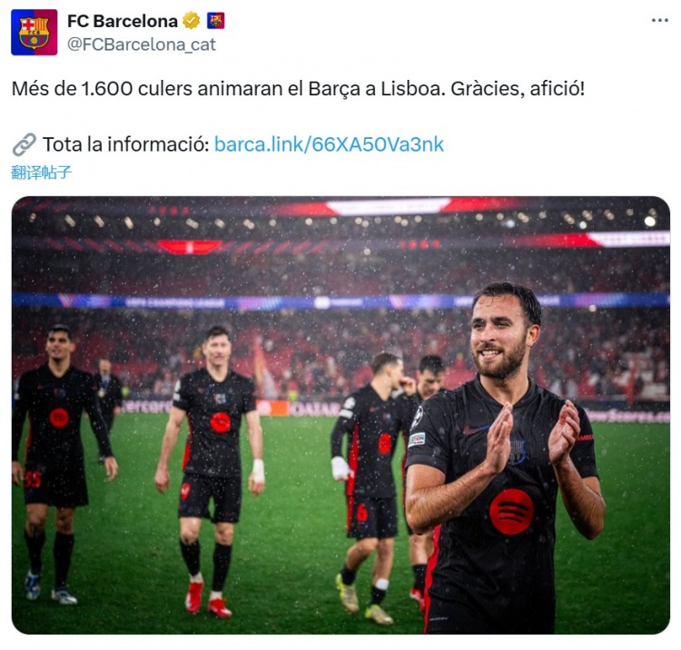 2025-03-04 20:27:00巴薩官方:超過1600名巴薩球迷將在里斯本為球隊(duì)加油,感謝球迷們