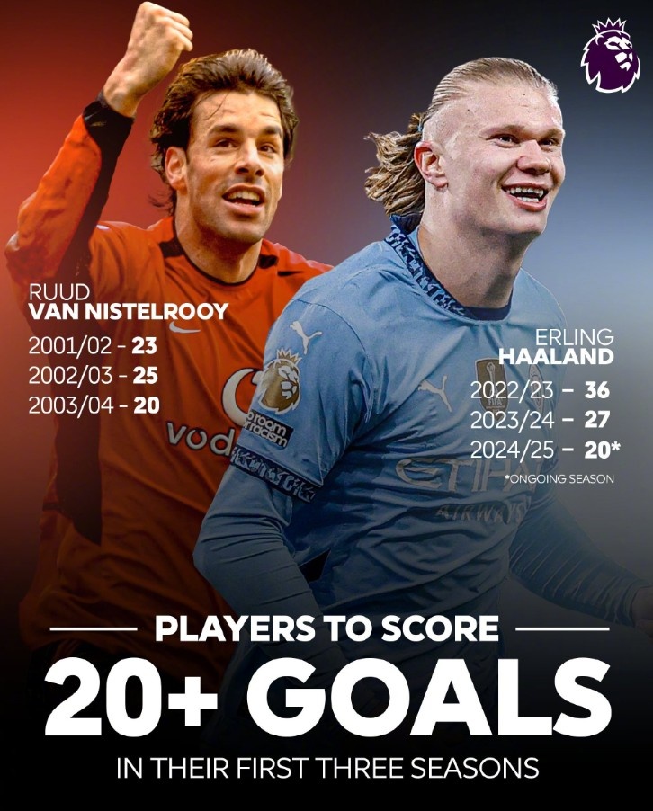 2025-03-04 20:28:23英超歷史只有兩名球員生涯前三賽季進(jìn)球20+:分別是范尼和哈蘭德