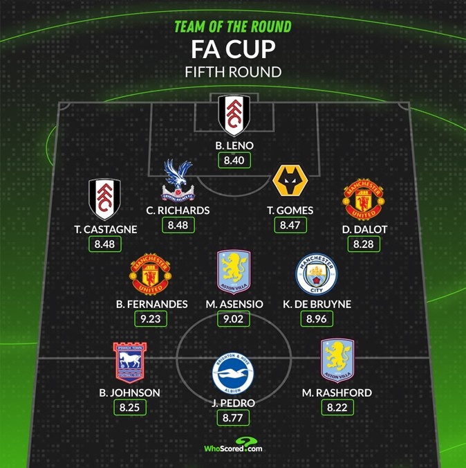 2025-03-04 20:28:51whoscored本輪足總杯最佳陣:B費&丁丁領銜,拉什福德&萊諾在列