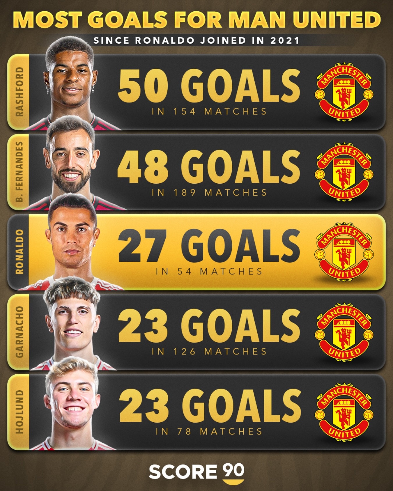2025-03-04 20:29:58曼聯(lián)近4年射手榜:拉什福德154場(chǎng)50球 B費(fèi)189場(chǎng)48球 C羅54場(chǎng)27球