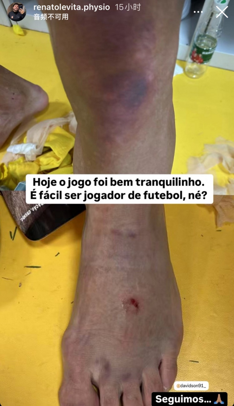 2025-03-04 20:36:39西海岸理療師曬戴維森腿部傷勢照:當足球運動員很容易,對吧?