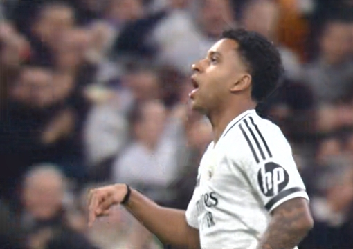 2025-03-05 11:07:32安靜!羅德里戈進球后指著袖標(biāo)的15冠&手指向下,最后指胸口隊徽