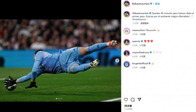 2025-03-05 11:10:03庫爾圖瓦社媒:還剩90分鐘但已邁出第一步,感謝伯納烏的神奇氛圍