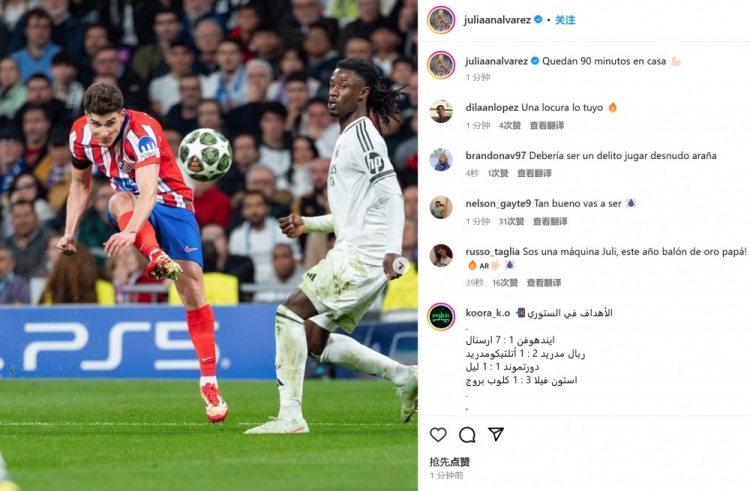 2025-03-05 11:10:50內(nèi)切兜射世界波!阿爾瓦雷斯社媒曬進(jìn)球瞬間:回到主場還有90分鐘