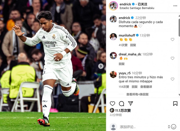 2025-03-05 11:12:33替補登場迎歐冠淘汰賽首秀,恩德里克社媒曬照:享受比賽每個瞬間