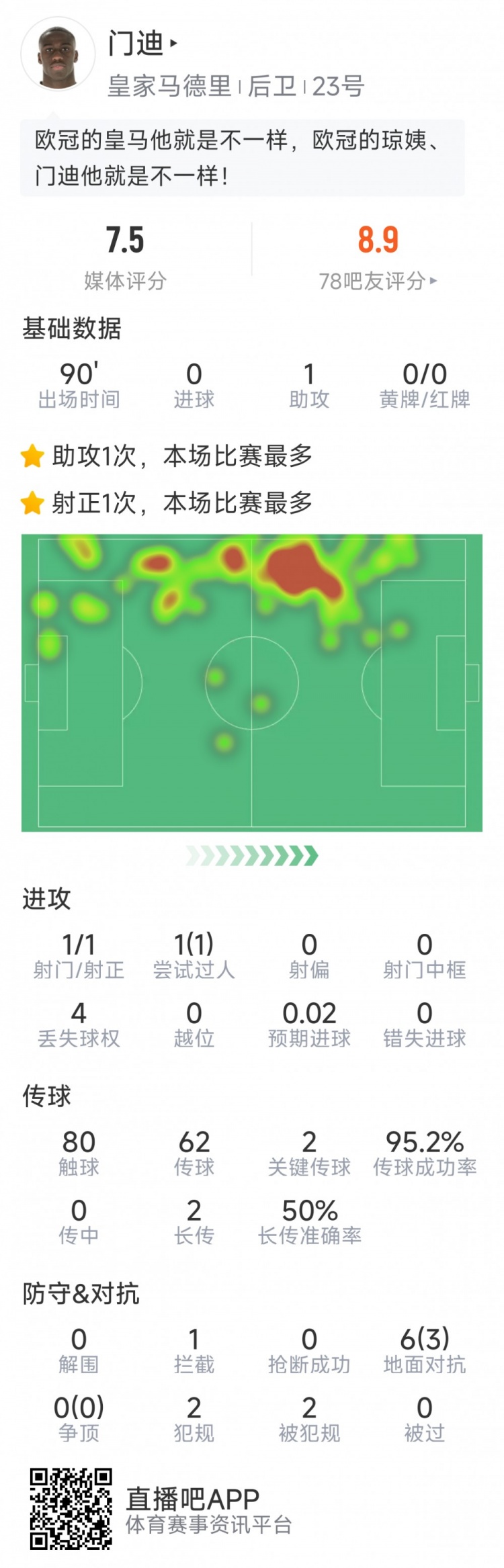 2025-03-05 11:15:02門(mén)迪本場(chǎng)數(shù)據(jù):1次助攻,1次射門(mén),2次關(guān)鍵傳球,評(píng)分7.5分