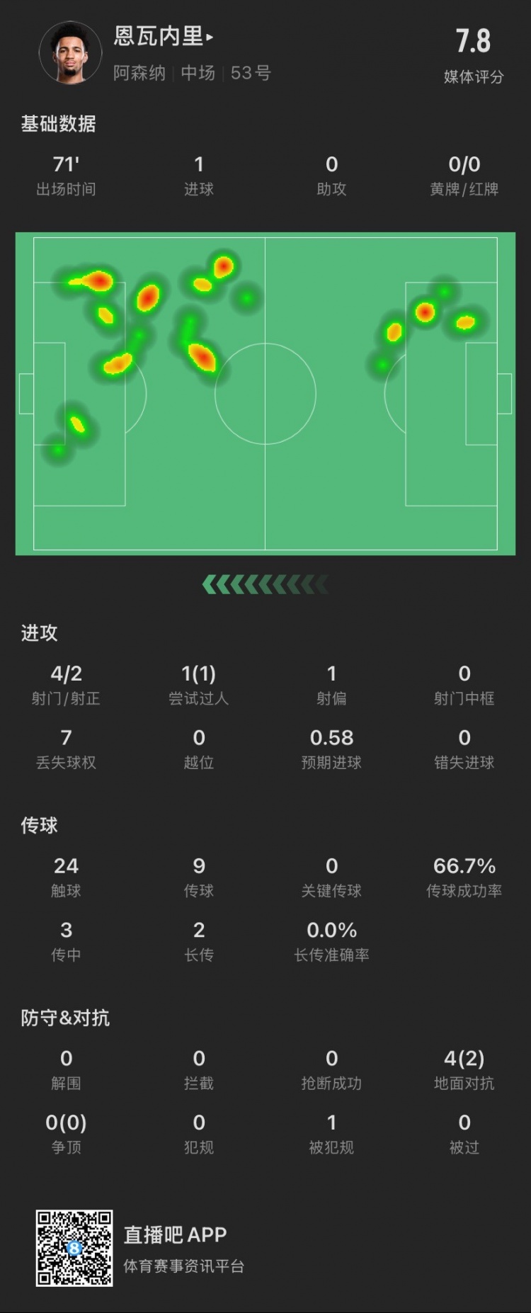 2025-03-05 11:16:1117歲恩瓦內(nèi)里本場:4射2正進1球,1次過人成功,4次對抗成功2次