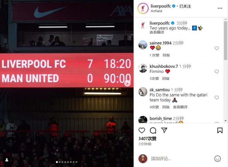 2025-03-05 20:23:09利物浦官媒曬圖:兩年前的今天7-0大勝曼聯(lián)