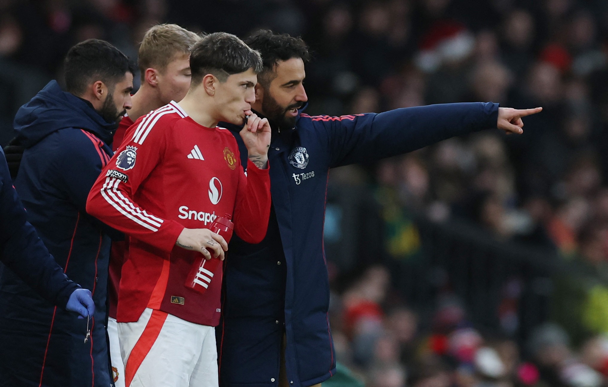 然后是加納喬,他的速度和力量幫助曼聯(lián)在對(duì)陣萊斯特城的足總杯第四輪中取勝,但作為一名邊路球員,他并不完全符合阿莫林的需求。在對(duì)陣萊斯特城的那場(chǎng)比賽之后所發(fā)生的事情,很好地總結(jié)了加納喬的挫敗感。在輸給熱刺的比賽中,加納喬錯(cuò)過(guò)了一些不錯(cuò)的機(jī)會(huì),然后在對(duì)陣伊普斯維奇的比賽中,當(dāng)多古被罰下后,阿莫林自然而然的選擇換下加納喬——這也讓加納喬氣鼓鼓地走進(jìn)了球員通道。